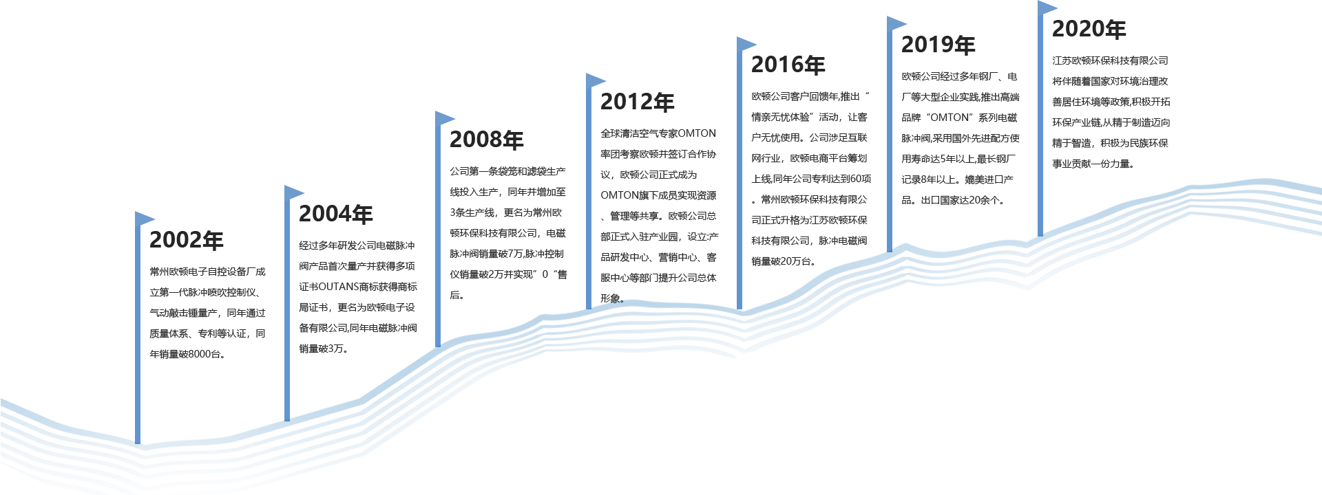 江蘇歐頓環(huán)保科技有限公司是一家專業(yè)從事袋式除塵器配件研發(fā)、生產(chǎn)、銷售和環(huán)保技術(shù)相關(guān)的企業(yè)。公司通過國家相關(guān)產(chǎn)品認證企業(yè)、質(zhì)量等認證企業(yè),公司擁有袋式除塵器技術(shù)研發(fā)中心、實驗中心、檢測中心等配套實施。我們以全球科技發(fā)展為導(dǎo)向,2014年通過與國外知名工業(yè)清潔空氣凈化專業(yè)企業(yè)進行合作,引進先進的空氣凈化技術(shù)和先進的產(chǎn)生、管理模式,投入大量資金對電磁脈沖閥膜片和除塵濾料產(chǎn)品進行研發(fā),并獲得顯著成果,使得歐頓產(chǎn)品在國內(nèi)市場占有一席之地,產(chǎn)品質(zhì)量媲美國外產(chǎn)品,使得歐頓公司在袋式除塵行業(yè)起到跨越性作用。我們的產(chǎn)品包括電磁脈沖閥、脈沖噴吹控制儀、除塵濾袋、除塵袋籠、除塵器專用氣缸、專用配件、電氣控制柜及過濾筒、氣動助流產(chǎn)品等。其袋式除塵產(chǎn)品廣泛應(yīng)用于電力、冶金、建材、垃圾焚燒、化工等行業(yè)。在過去的數(shù)年里,公司的產(chǎn)品和服務(wù)得到了市場的認可及肯定,產(chǎn)品出口到數(shù)十個國家。